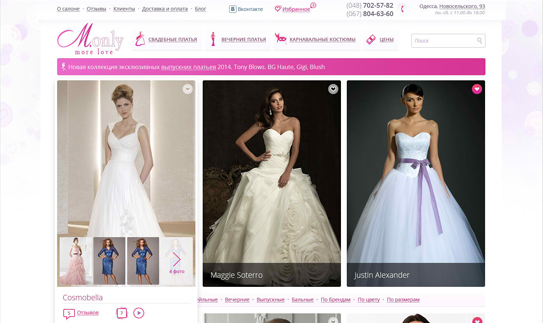 Нажав на понравившееся вам платье, вы автоматически переходите на его страничку. На ней вы сможете найти фотографии платья в разных ракурсах, просмотреть доступные цвета и размеры, просмотреть видео, задать интересующий вас вопрос по поводу данного платья, оставить свой отзыв или даже записаться на примерку.