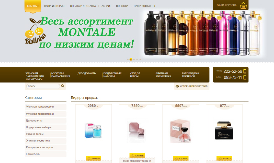 На главной странице разместили практически все, что может понадобится клиентам, а вот за более детальной информацией, придется нажать на один из блоков, например: топ продкуция, категории продукции, история заказов, корзина, новости и т.д. В общем смотрите сами и увидите, что как для такого количества информации для одной страницы все оформеленно довольно аккуратно и со вкусом "kislinki".
