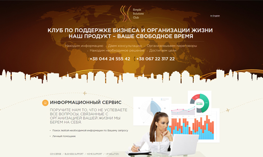 Небольшой, но симпатичный лендинг с описанием услуг и тарифов компани имеет два языка, несколько простых анимаций и контактные данные. В принципе это все самое необходимое, что нужно для лендинга.